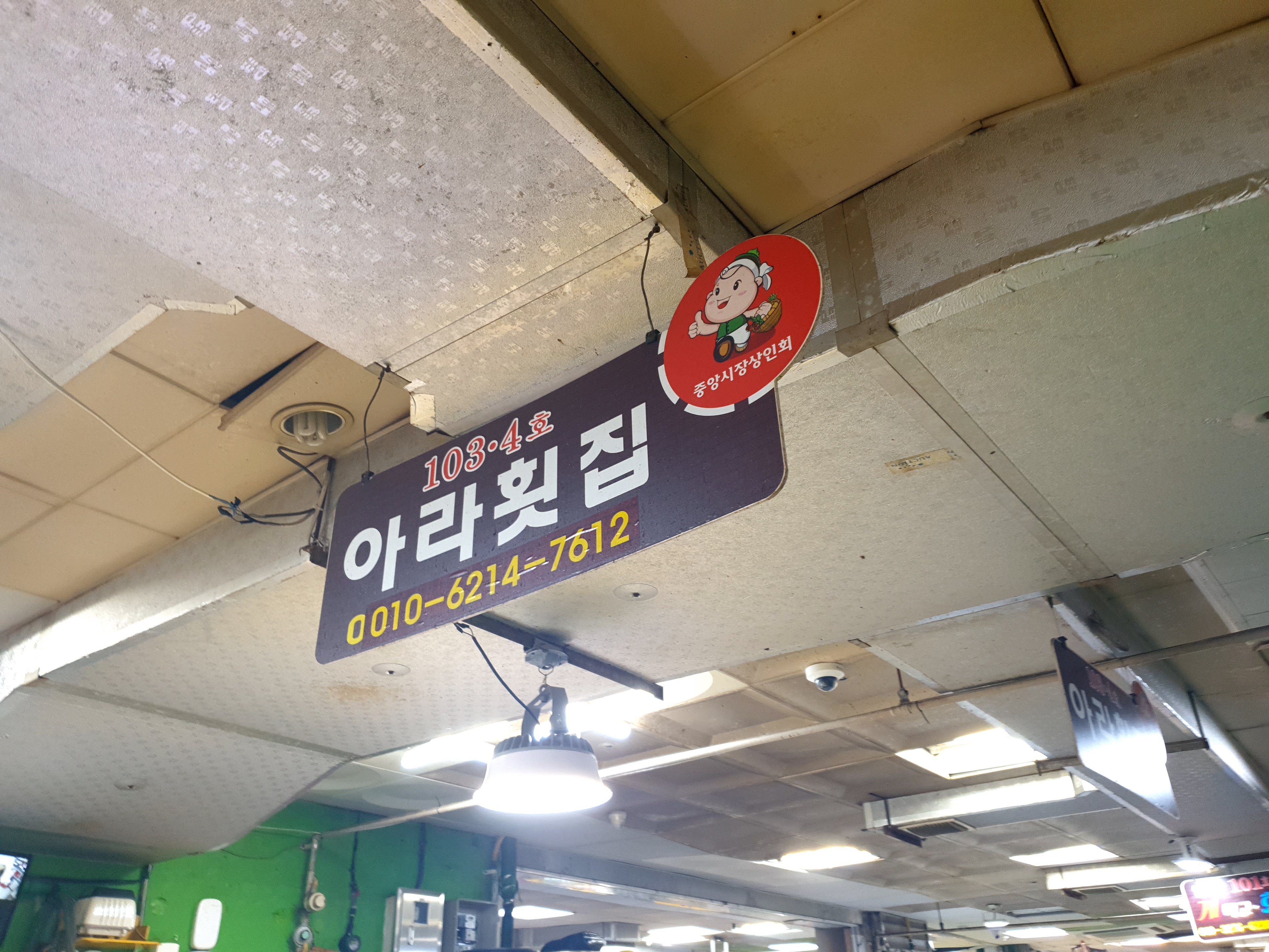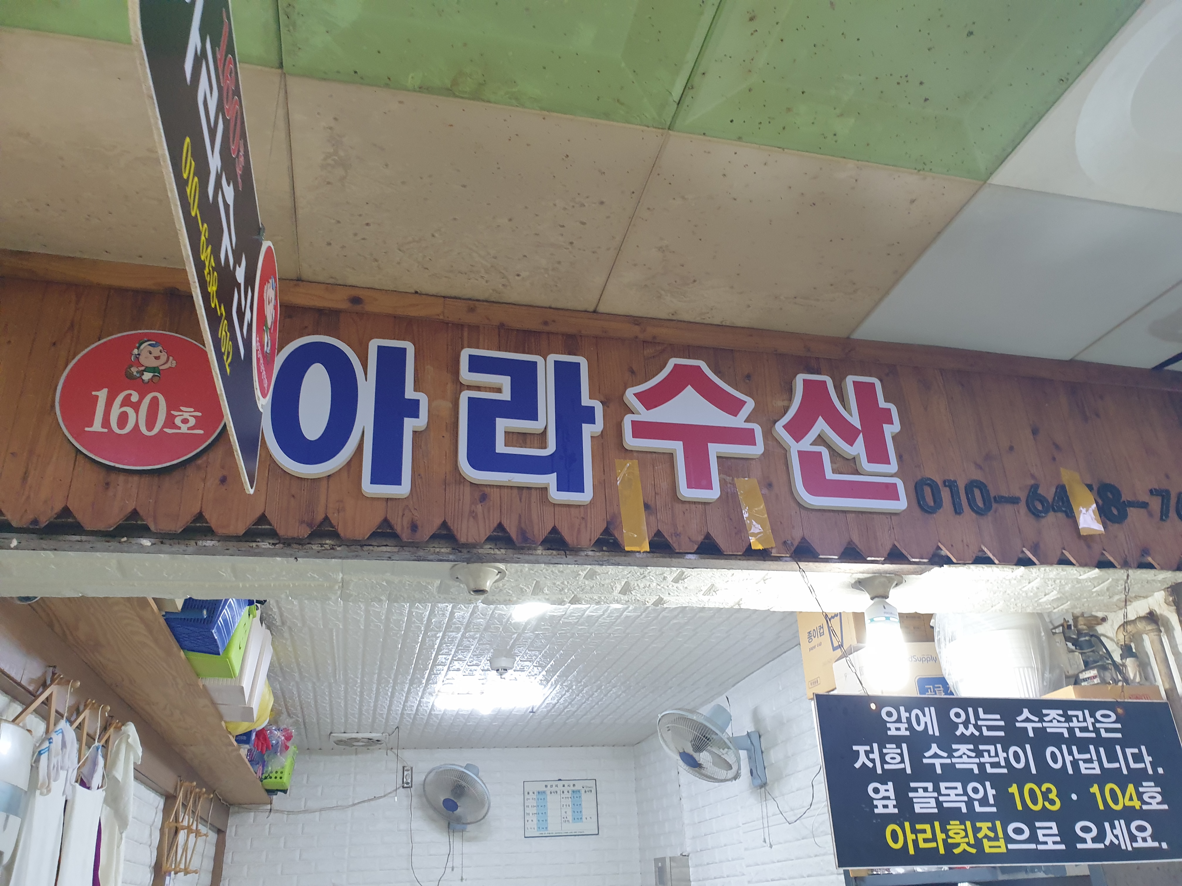 그런데 이곳은 식사만 가능한 곳이었고 앞쪽 수족관은 아라수산 수족관 아니고 아라횟집 103,104 호를 찾아오라고 하시더라고요!