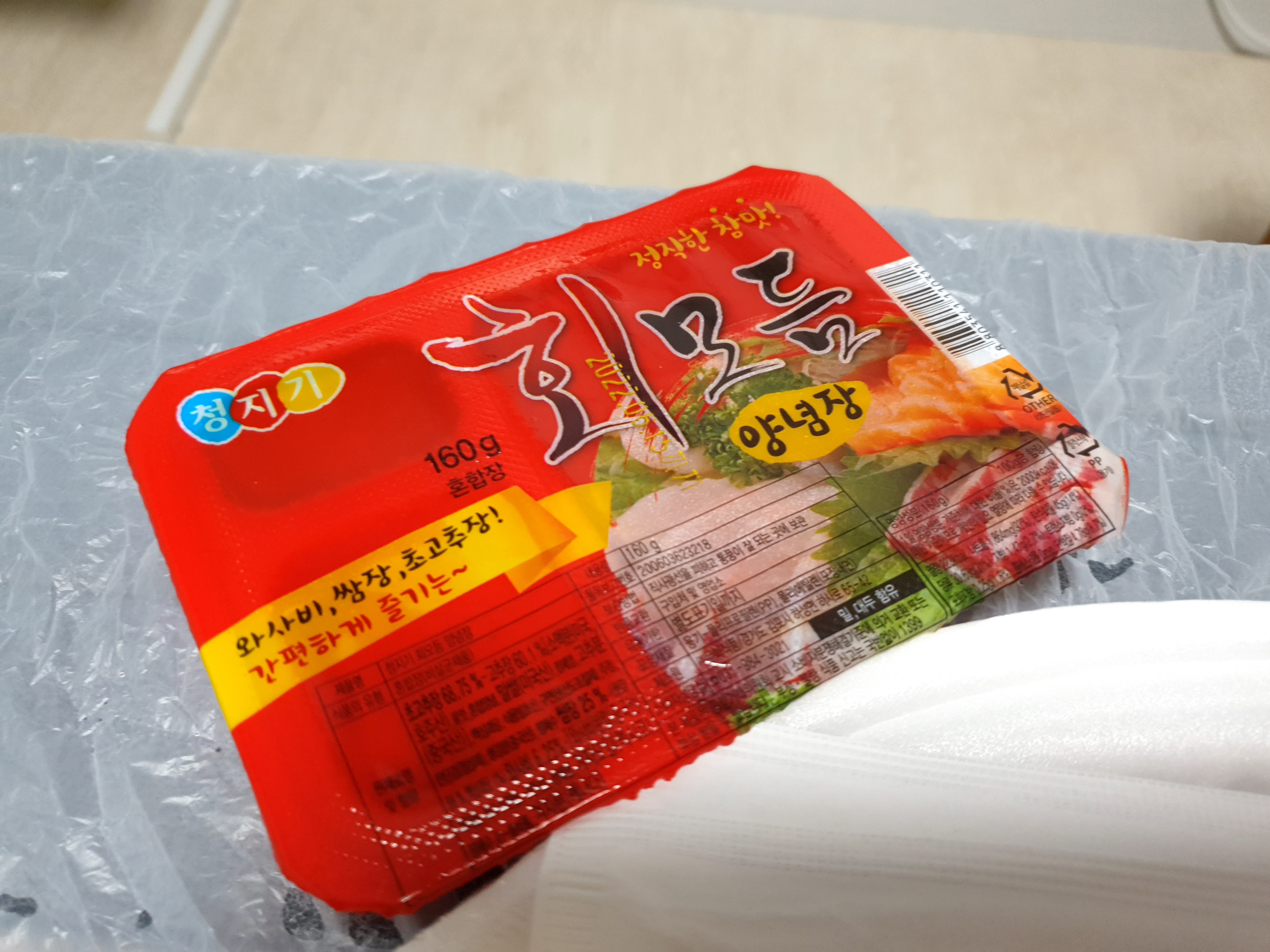 회와 함께 초장을 주셨는데 라떼는 말이야 초장만 있었는데 요즘에는 초장, 고추냉이, 쌈장이 같이 들어 있더라고요??ㅎㅎ