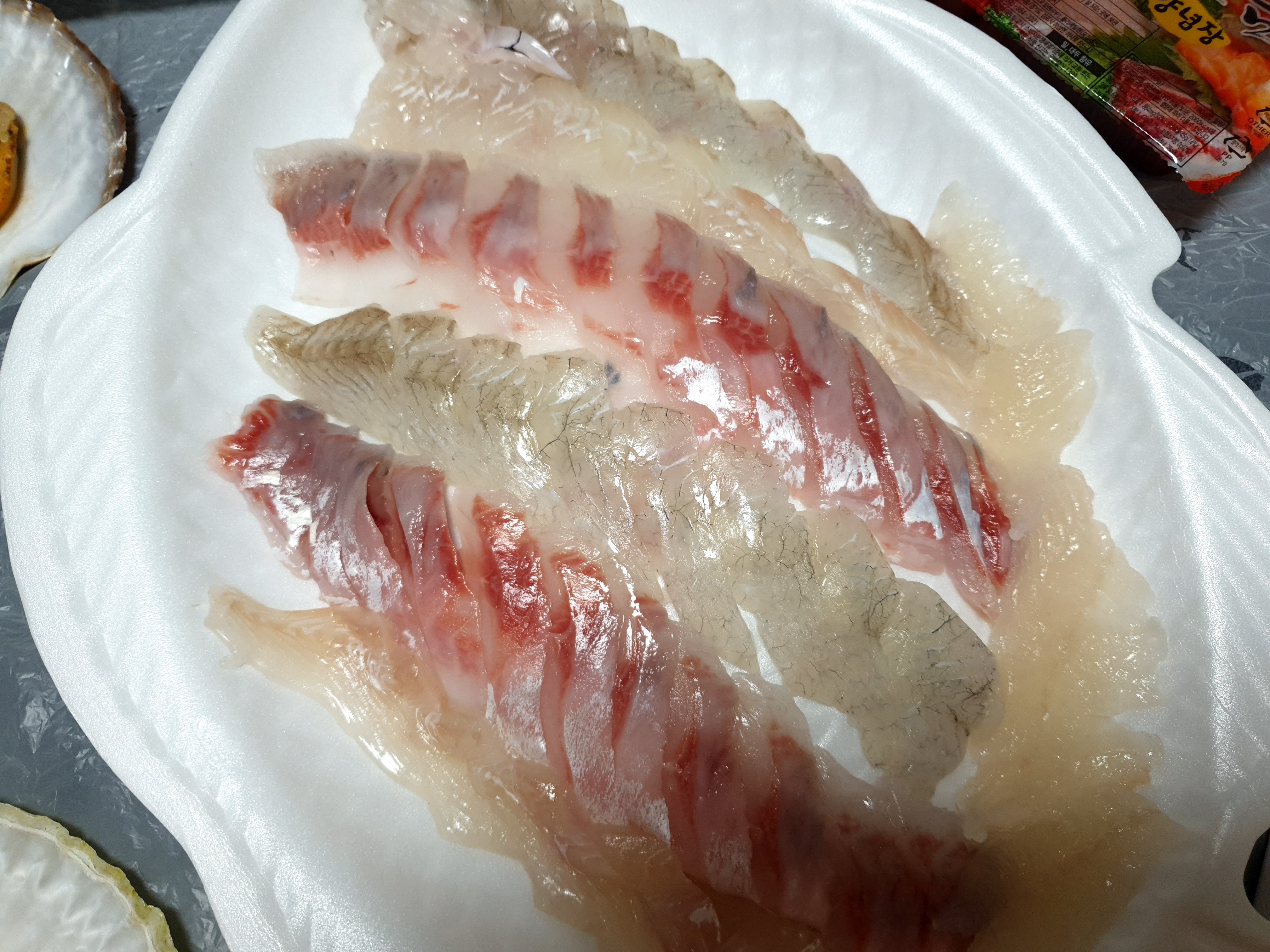 저희는 대게 2마리, 자연산 쥐치, 광어, 숭어 그리고 가리비, 멍게, 전복 먹기로 했습니다!