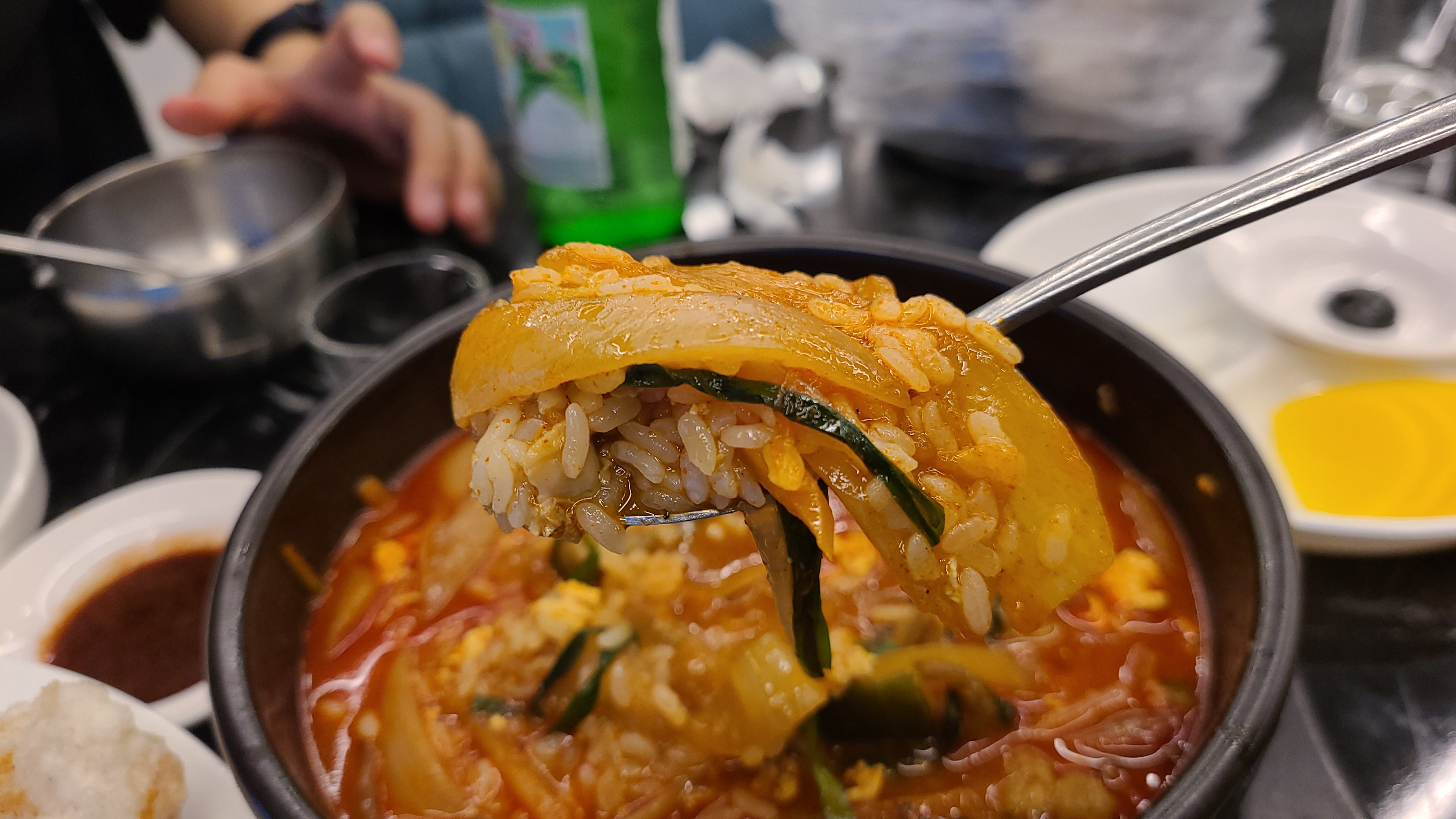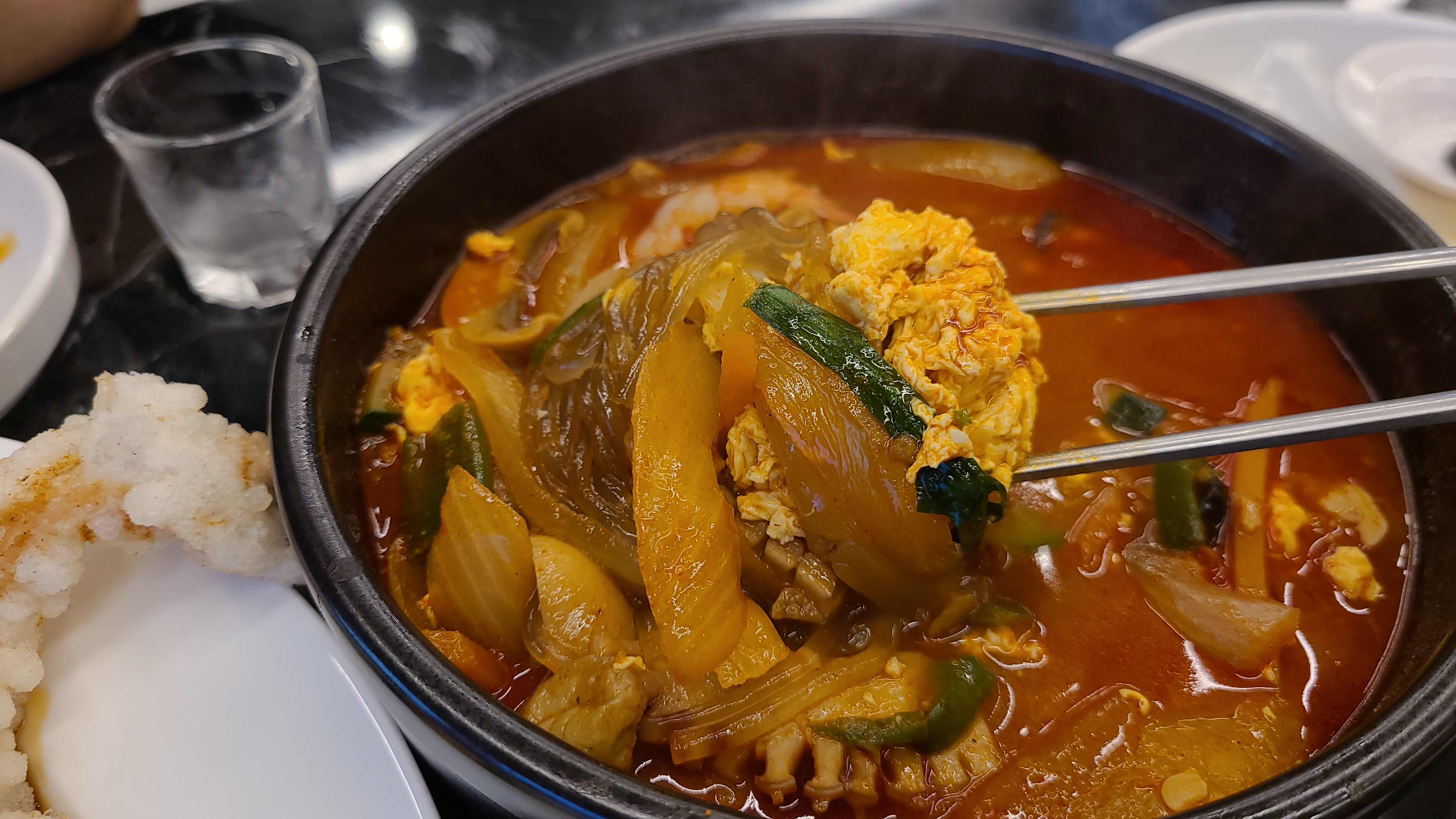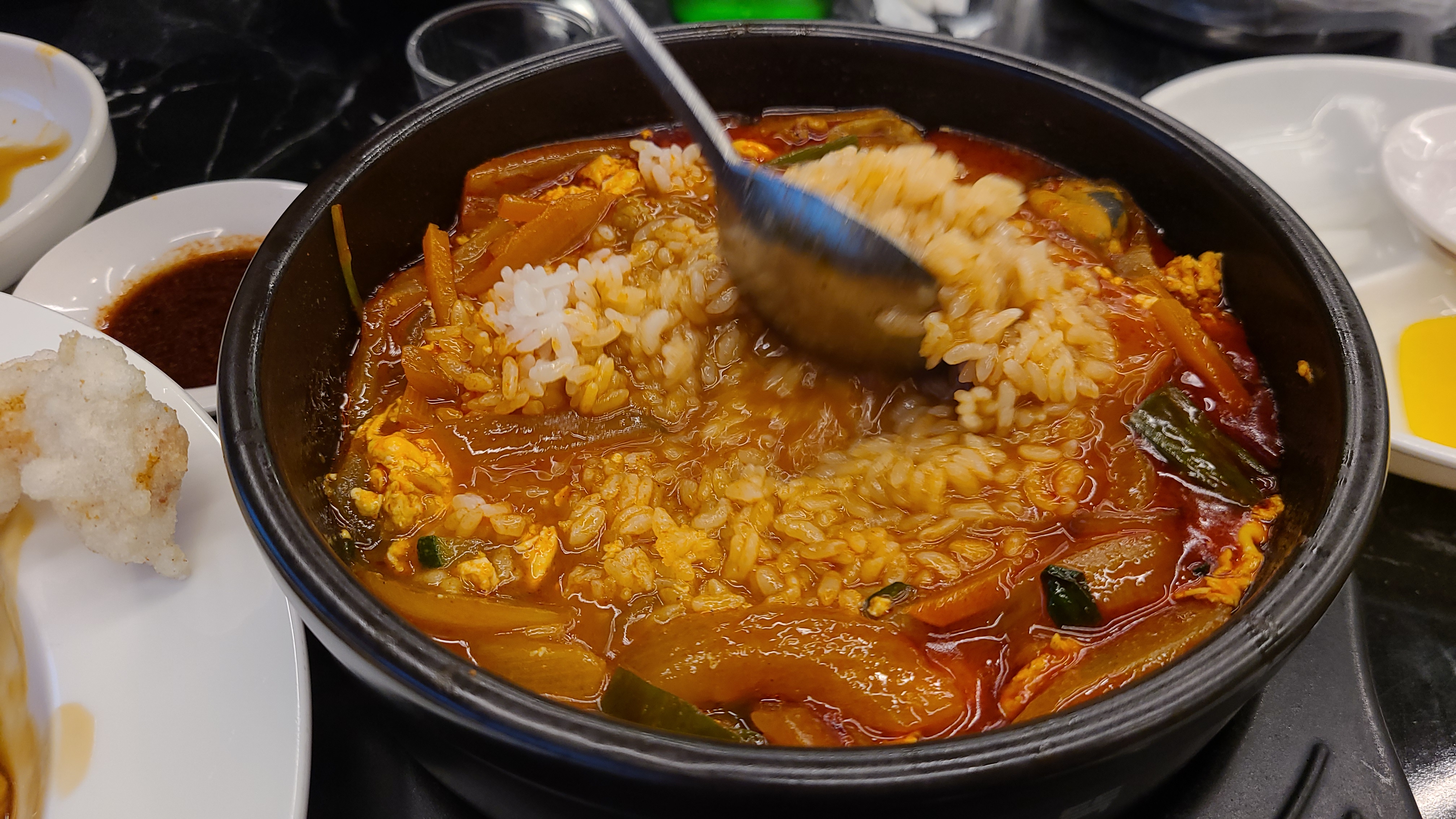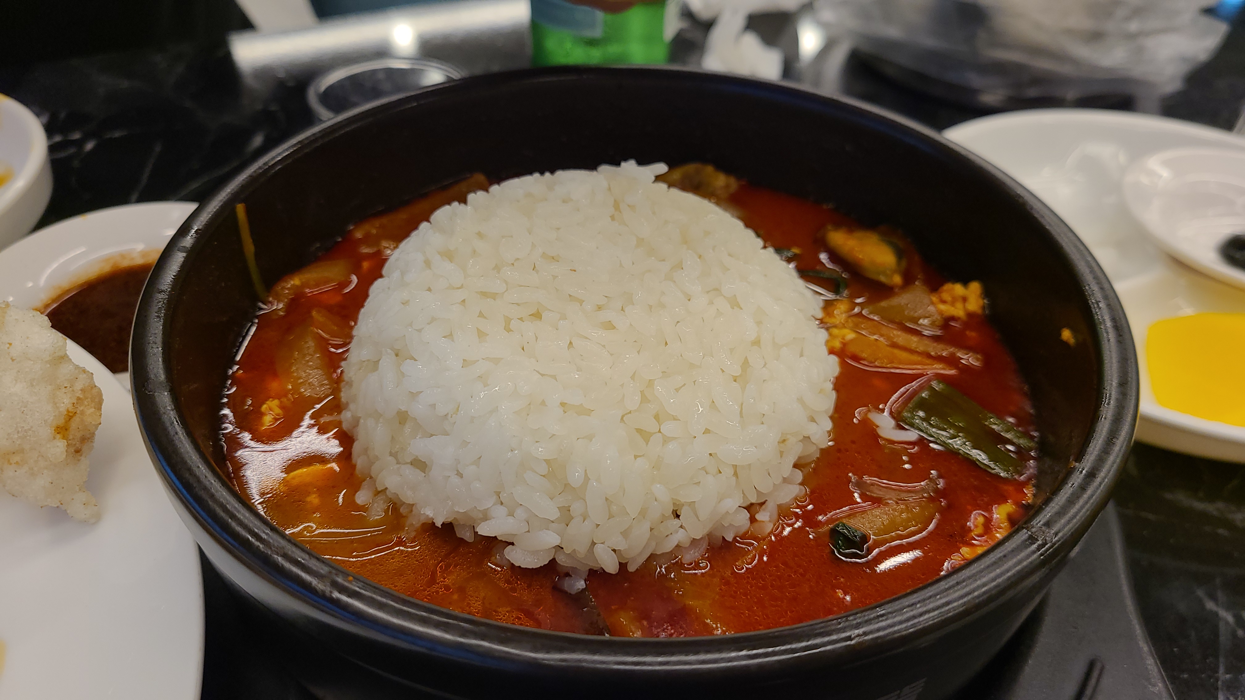 뚝배기 짬뽕밥도 나왔습니다. 커다란 뚝배기에 보글보글 끓여주시는 짬뽕인데 여기 짬뽕에 진짜 진심인 거 같았습니다.