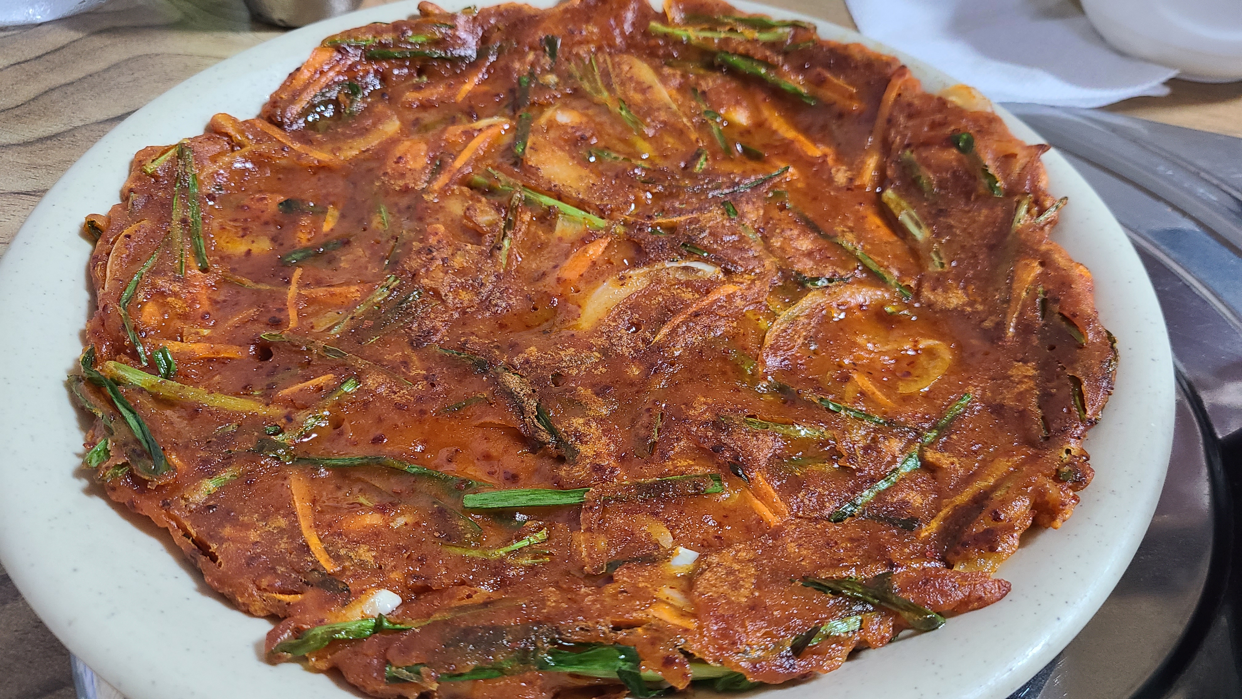 장떡은 진짜 잘 주문한 거 같았습니다. 고소한 전에 살짝 매콤하고 야채가 푸짐하게 들어있어 너무 맛있게 먹은 거 있죠.