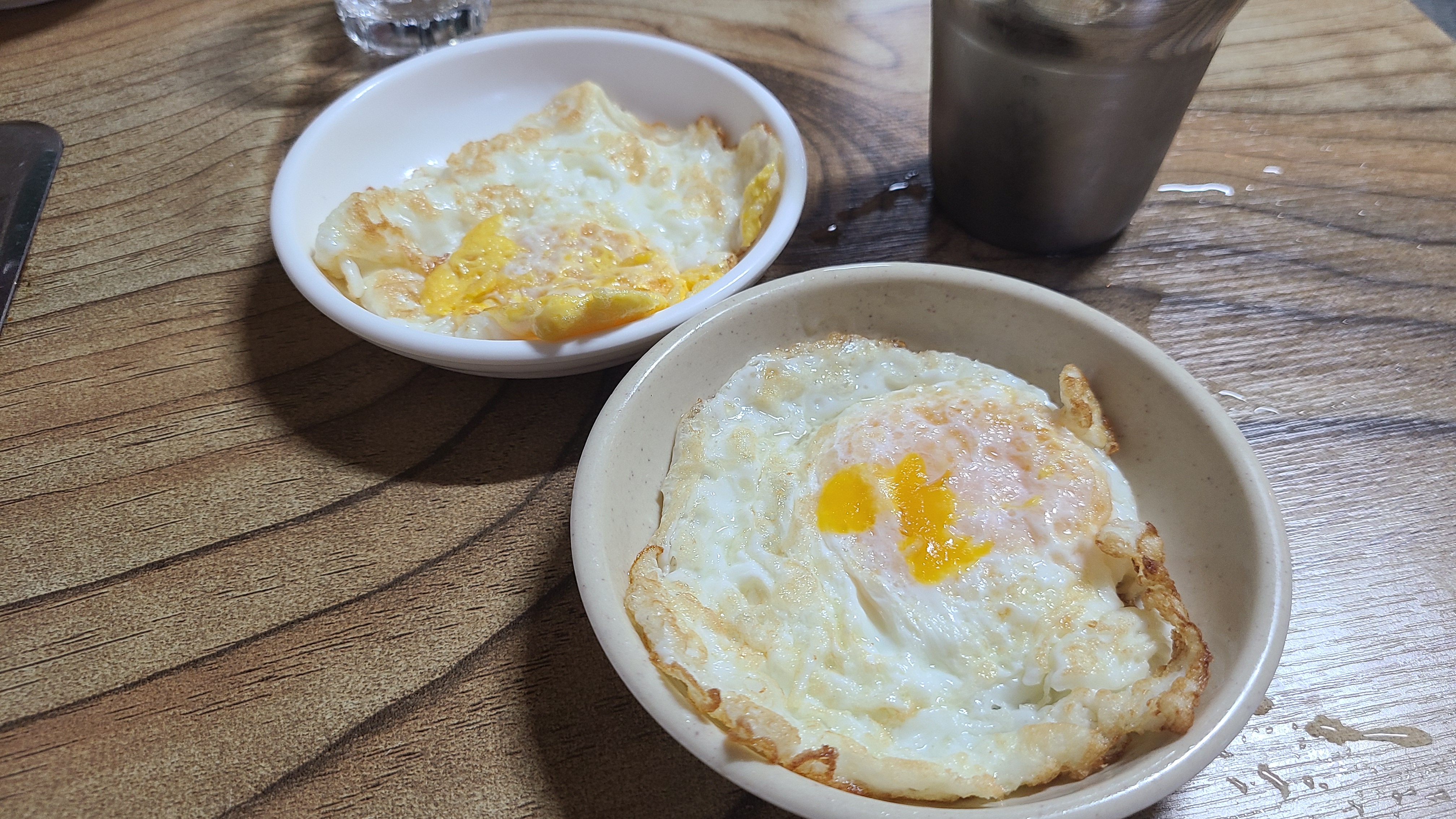 그때그집 방문하면 사장님 인심이 진짜 좋다고 느껴지는 부분! 소주를 주문하면 이렇게 기본안주로 계란프라이를 내어 주시거든요.